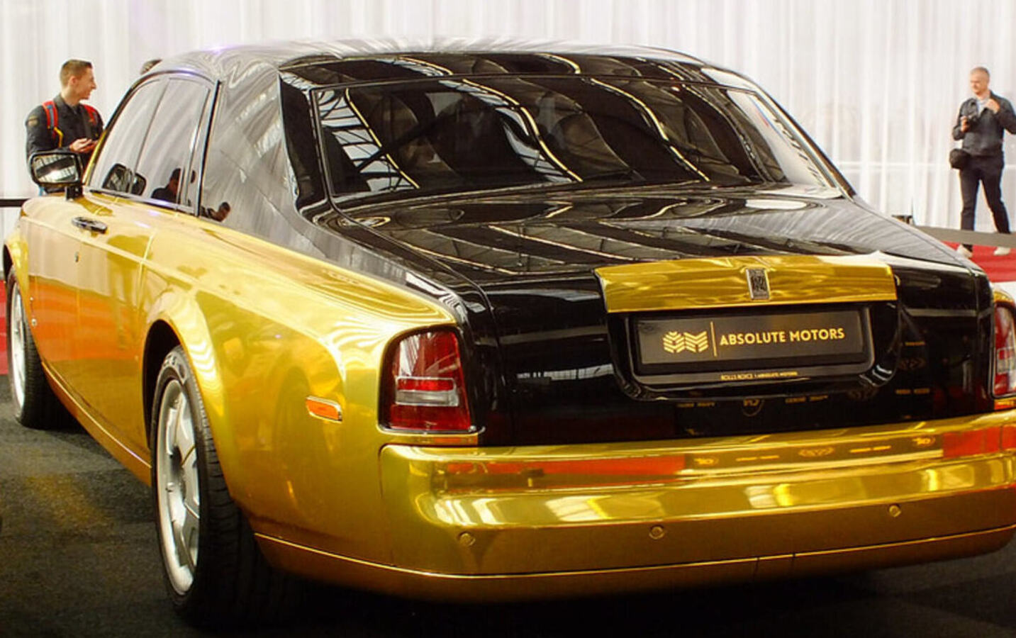 Yes, solid gold. This custom Phantom was covered in 120 kg of 18-karat gold plating, inside and out. Gold trim, gold Spirit of Ecstasy, gold seat stitching, you get the idea. It took over 800 man-hours to complete and belongs to a Middle Eastern billionaire. It’s part car, part treasure chest. Seriously, though.