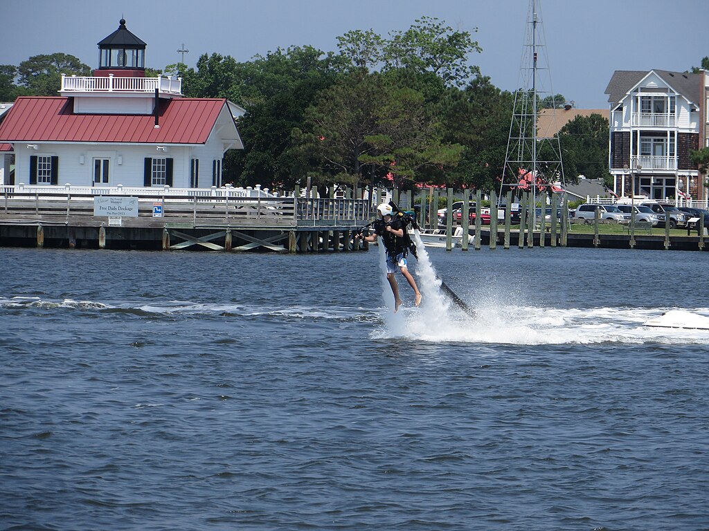 The OBXjetpak Flight Center offers one of the most thrilling experiences in the Outer Banks: a flight adventure of a lifetime via water-powered jet packs. You’ll undergo training to learn how to propel the jet pack and have an unforgettable time soaring above the water. The introductory flight experience costs $250 per person. A swimsuit is required, but you can rent one at the park.