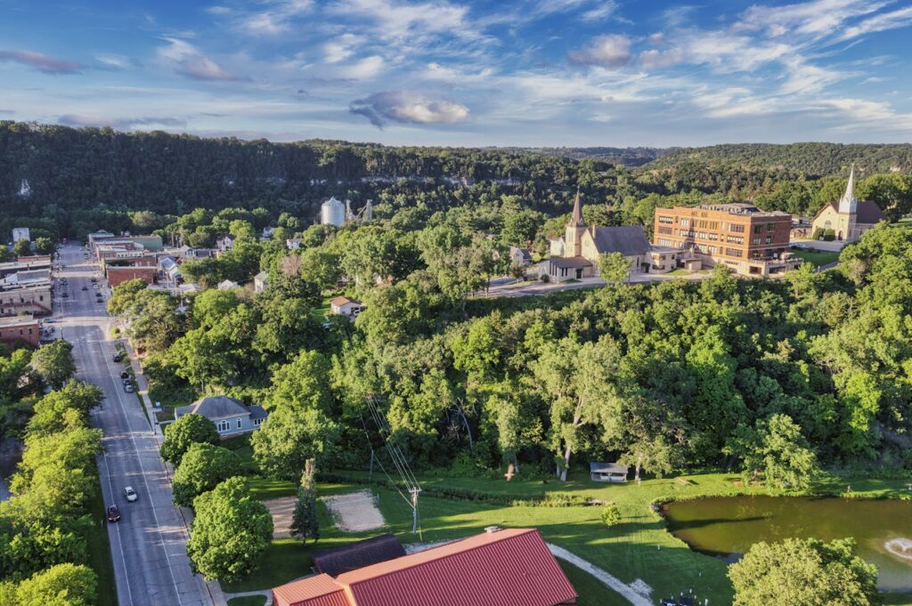 This hillside town has Cornish roots and limestone cottages to prove it. Pendarvis Historic Site tells the story of miners who dug for lead here before Wisconsin was a state. You’ll find artists working inside old warehouses, and pubs that serve pasties and tea like it’s still 1845.