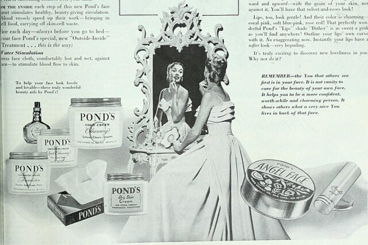 Vaseline was used in a variety of different ways, including targeted treatments. It can be used as a facial moisturizer if you have dry skin (they’d apply a thin coat), or it could be added as a night routine step, where they leave it on all night. Other women would use petroleum jelly on their nails, brows, lashes, or lips (be careful not to lick your lips if you try this). It can also be used to help reduce under-eye puffiness or as a makeup enhancer, according to 50s routines.