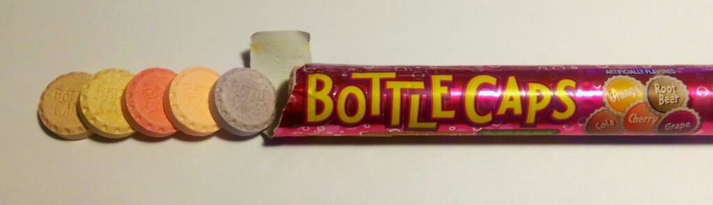 Shaped like tiny soda bottle caps, Bottle Caps were the perfect sugar overload that captured the essence of our favorite fizzy soft drinks. With flavors like cola, root beer, and orange soda, Bottle Caps were a nostalgic nod to soda fountains and created a joyful mouth-watering fizz. A kid’s favorite in the 1970s.