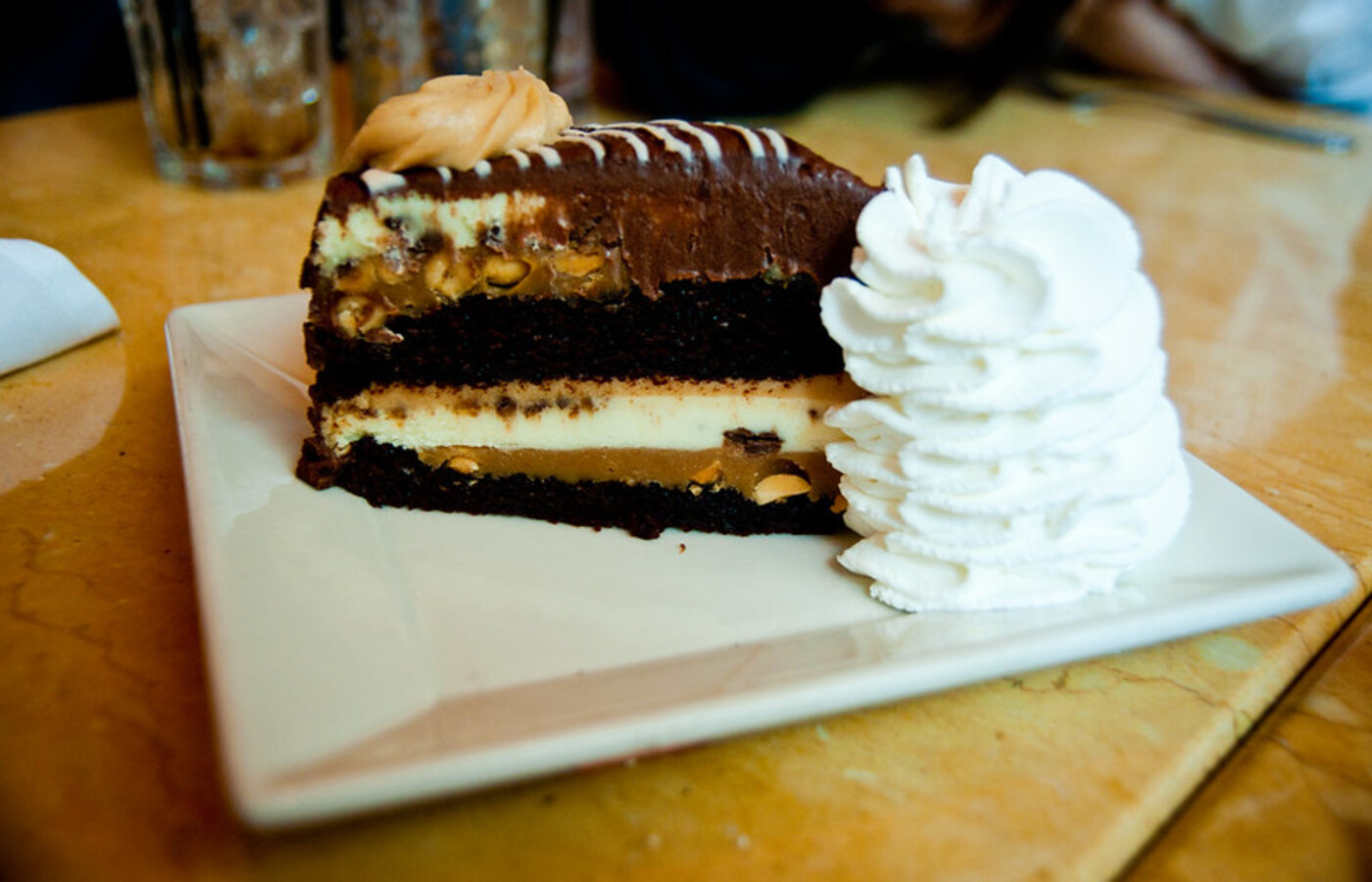 Cinnabon. Reese’s. Hershey’s. Adam’s Peanut Butter Cup Fudge Ripple. The Cheesecake Factory loves a good collab. These branded flavors add that extra dose of nostalgia (and sugar). You’re getting two desserts in one. If you’re into flavor mashups, this place is a goldmine. Downside? Lots and lots of extra calories. But the question is, are you bothered?
