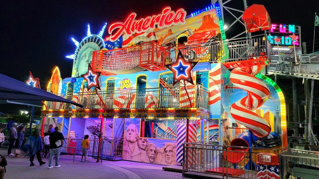 What was once a sleepy shrimping village now boasts boardwalk planks milled from Louisiana cypress that darkens distinctively after Gulf storms. The wooden supports have barnacle patterns unique to this section of Galveston Bay—marine biologists sometimes study them between ride inspections. Early spring brings the peculiar local phenomenon of “jumping mullet season” when fish leap frantically around pier supports while pelicans dive-bomb in chaotic feeding frenzies. Weekend performers include retired oil rig workers who learned instruments during long offshore shifts. The carousel contains hand-carved creatures specific to Gulf wildlife—the blue crab seat requires special maintenance due to its delicate appendages. Hurricane memory markers subtly indicate historic water levels on supporting columns—locals point them out with a mix of pride and apprehension.