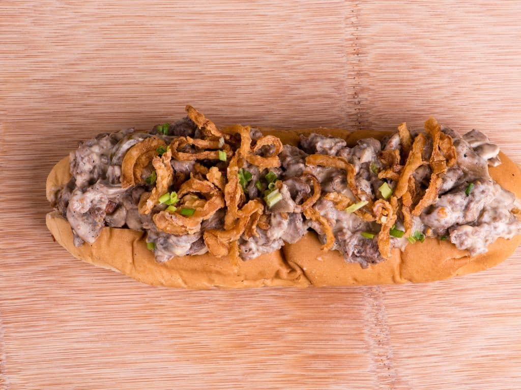 If your backyard cookout had a main event, this would be it. Pile on chopped smoked brisket and stack a few dill pickles for a tangy crunch. Then, drizzle everything with rich, smoky BBQ sauce. The flavors hit hard, delivering that Texas-style slow-smoked goodness in every bite. Toss on crispy fried onions or coleslaw to push it even further. Just don’t forget extra napkins—trust me.