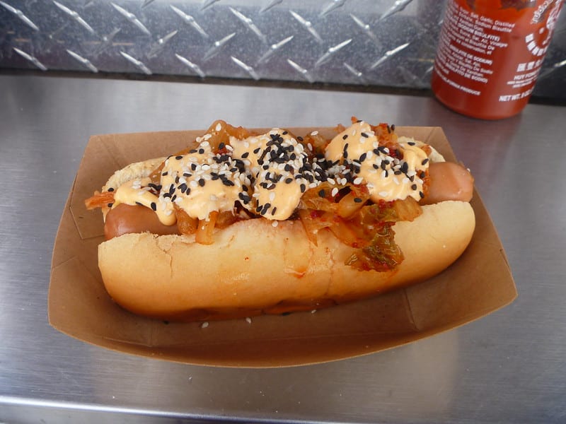 If you like your food with a little attitude, this hot dog gets it. The tangy crunch of fermented kimchi meets the creamy heat of Sriracha mayo for a bold, fiery bite. Chopped scallions and sesame seeds? Non-negotiable. The mix of spice, umami, and crunch is seriously next level. Be ready for a little kick, though. This one’s not playing around.