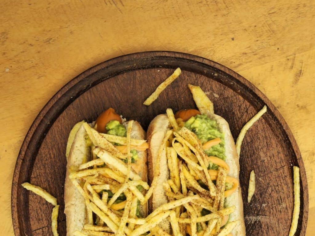 Just think of this as your hot dog’s taco-inspired glow-up. A generous layer of fresh guacamole sets the stage. Top it with crushed tortilla chips for the perfect crunch. Cotija cheese and a squeeze of lime? Non-negotiable. Sprinkle in some chopped tomatoes or add chipotle sauce for a smoky kick. Every bite is creamy, crispy, and just the right amount of messy.
