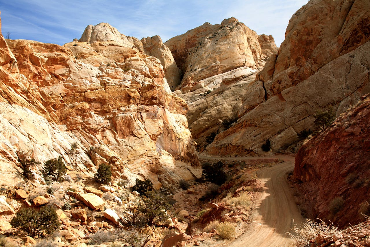 No name, no trail sign, but it’s real. There’s a narrow slot tucked just below the Burr Trail switchbacks. Park at the bottom and hike west into the drainage. The canyon quickly narrows into angled sandstone walls that catch golden light. It’s not long, but few know it’s there.