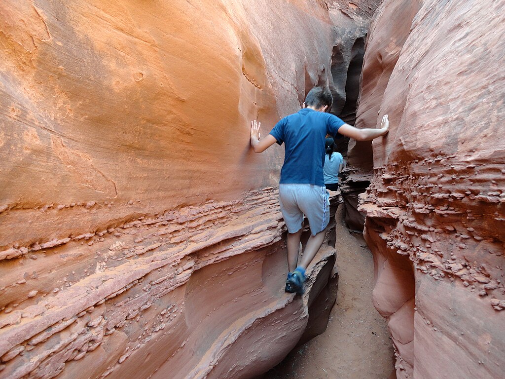 You’ll need a little grit at the start—literally. The entrance has a 12-foot scramble, but handholds are carved into the rock. Once inside, Peek-a-Boo rewards you with swirling sandstone and tight curves. It’s part of the Dry Fork area.