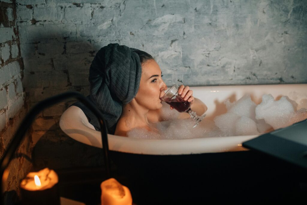 Soaking in a hot bath feels like pressing a reset button on your day. Add some bubbles, play your favorite chill playlist, and let the warm water work its magic. A bath before bed can seriously improve your sleep game too. No bathtub? A hot shower works too – let the water hit your neck and shoulders to melt tension. Add a few drops of essential oil to the shower floor for a spa-like smell. Even just soaking your feet in warm water while you watch TV can be super relaxing.