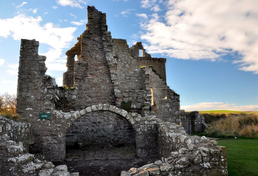 Dunnottar Castle sits in ruins atop a cliff overlooking the North Sea on Scotland’s coast. The castle is around 2 miles south of Stonehaven and was once the home of the Earl Marischal. Buildings that have stood the test of time are mainly from the 15th and 16th centuries and are believed to have been a pivotal point of defense for Scotland.