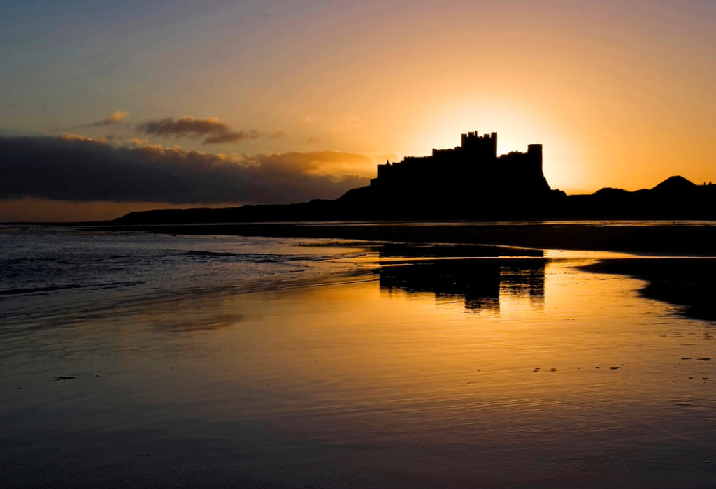 Bamburgh Castle is set on the rugged coast of Northumberland, where both sunrise and sunset create pristine vistas. The beach on either side of the castle stretches for many miles, making it perfect for walkers who want to catch a glimpse of the castle’s silhouette in the morning light. Evenings are equally beautiful, as the sun sinks beneath the sea and the dunes, painting the castle a deep orange before the moon takes its place in the night sky.