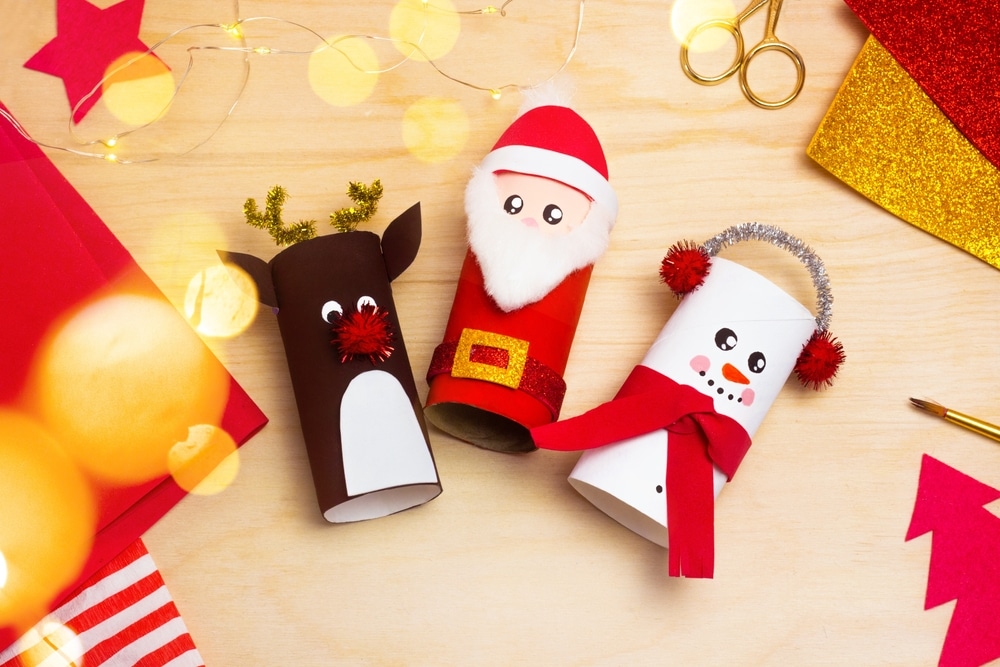 Turn empty toilet paper rolls into jolly Santas! Cover the roll with red construction paper or paint, then add a white cotton beard, a belt made from black paper, and a red hat with a cotton ball on top. Let the kids draw or glue on eyes and a smile to complete the look. These Santas are easy to make and perfect for decorating mantels, tables, or even as placeholders for holiday dinners. Kids will have a blast bringing their Santas to life.