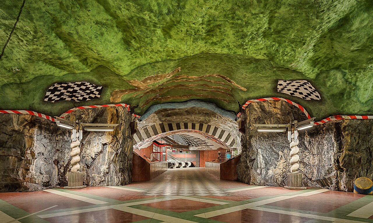 Hit up Kungsträdgården station and get ready for an underground treat. During the ’50s and ’60s demolition frenzy, somebody had the genius idea to rescue the coolest bits from old buildings and plaster them all over this place. Now you’ve got raw rock walls, colorful mosaics, and historic fragments creating this wild underground museum. You’re waiting for trains under “King’s Garden” in what’s probably Stockholm’s most jaw-dropping station.