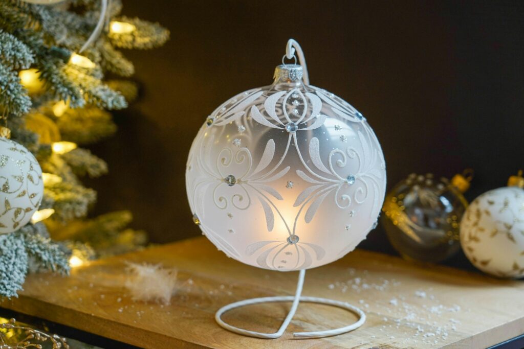 For a more elegant but still retro feel, you should go for glass ornaments. Vintage glass ornaments are known for their stunning designs. They often carry hand-painted details and intricate patterns. Each piece feels like a work of art! Some glass ornaments also feature bright colors for more colorful Christmas trees. Remember how only adults were allowed to handle them because they were so fragile? These ornaments were always handled with care and often passed down through generations.