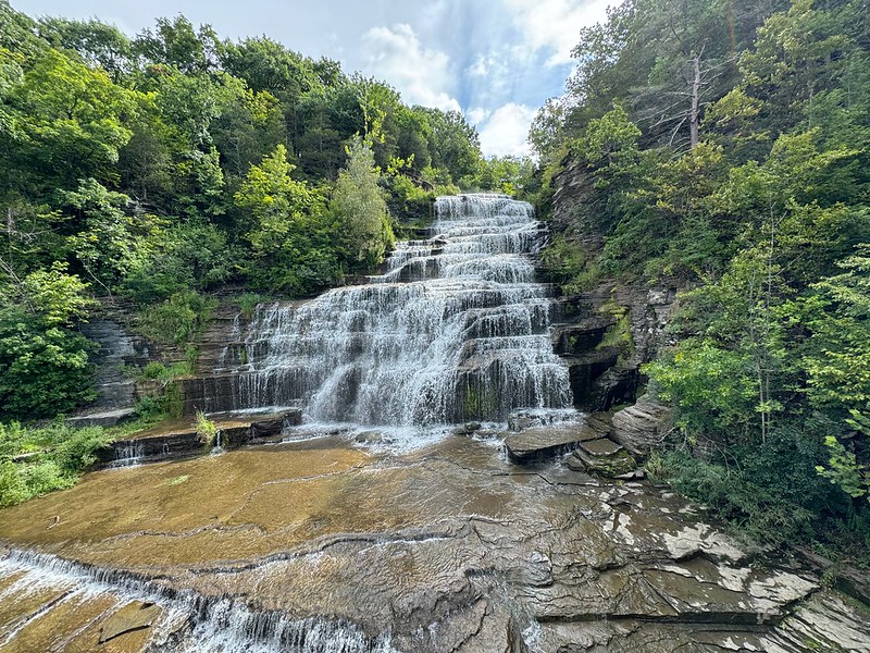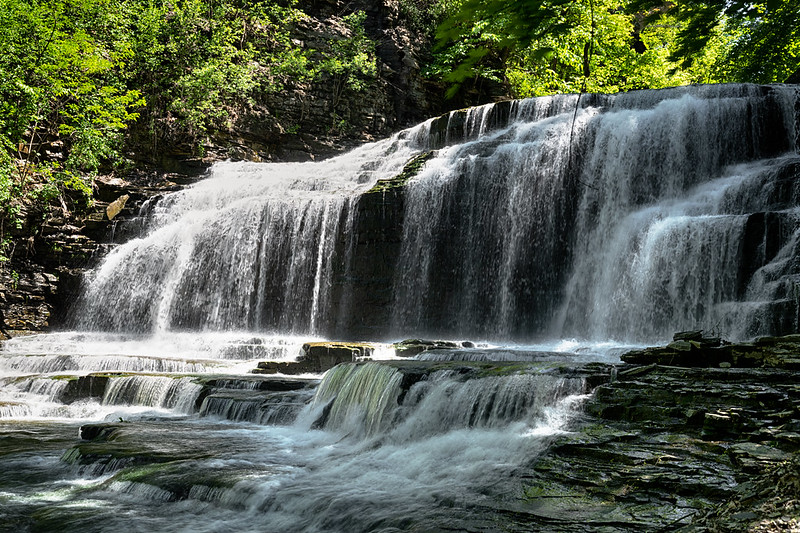 Hector Falls are a breathtaking wonder of nature along Seneca Lake’s eastern shore. The multi-tiered cascade plunges over 165 feet, reaching 250 feet if counted from the top of the cliff to the bottom. Unfortunately, you can only see the upper drop (50 feet) from the road as the rest of the cascade drops down below, and later pours into Seneca Lake. Still, it’s an impressive sight worth your time in summer.