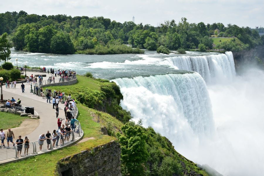 One of the world’s most visited natural wonders, Niagara Falls is famous for its large volumes of water cascading over its three waterfalls. About 600,000 gallons of water flow over the falls, the highest volume in North America. Much of this flow (90%) plunges over Horseshoe Falls, the largest of the falls, while the rest goes over American and Bridal Veil Falls. Summer is a prime time to experience the dramatic scenery of the waterfalls.