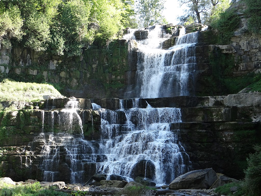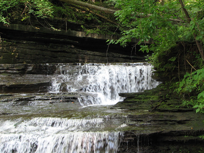 The 167-foot Chittenango Falls is the main highlight in Chittenango Falls State Park, a 193-acre park east of Cazenovia Lake. The two-tiered waterfall stands out for its unique appearance, cascading over the Onondaga Limestone Escarpment before dropping into the gorge below. You can reach the waterfall via a half-mile loop trail that will only take 18 minutes.