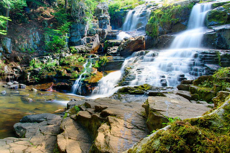 Shelving Rock Falls is among the most scenic trails along Lake George, lying on the eastern side. The 50-foot multi-tiered waterfall cascades over several rock formations before finally dropping into a single stream below. It’s 150 feet wide at the top and can be reached via an easy dirt trail perfect for a summer family adventure. There are also plenty of nearby trails you can explore.