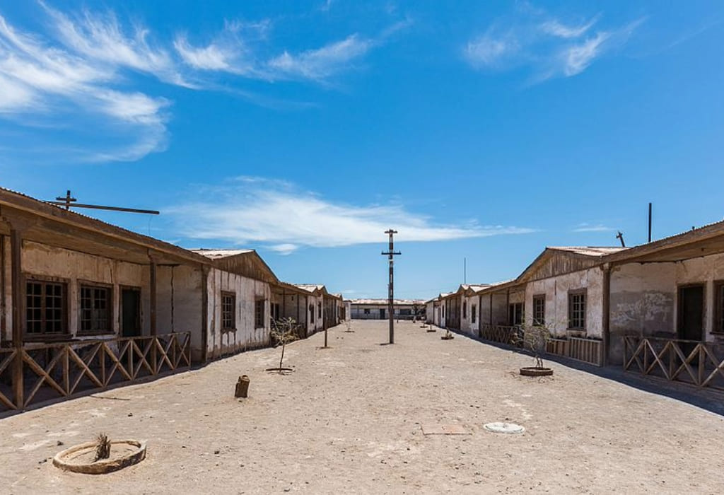 Humberstone in Chile was once a great saltpeter mining town in the late 19th and early 20th centuries. When synthetic alternatives replaced the natural nitrate mined in the town, the town immediately saw various setbacks that led to its collapse. Today, it is completely abandoned but has been preserved as a World Heritage site as the town’s old buildings and equipment tell the familiar story of boom-and-bust mining in Chile.