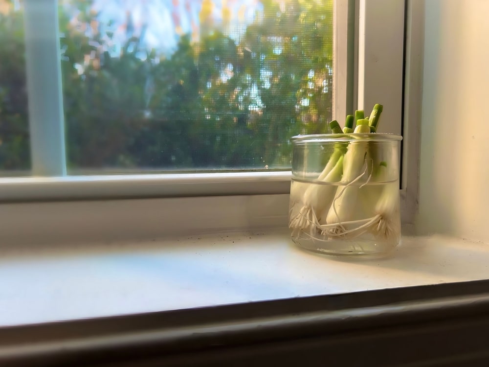 Stop buying green onions every week! Place the root ends in a glass of water near a window—they’ll regrow in days. Change the water every few days and trim what you need. One bunch can regrow 3-4 times before losing vigor. This also works for romaine lettuce bottoms and celery bases. Enjoy fresh herbs all year at zero cost. Keep the water level just touching the roots, not covering the whole base. It’s perfect for apartment gardening.