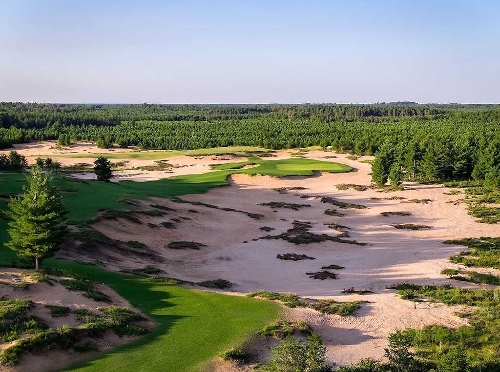 Mammoth Dunes is big in every way. Views stretch across dunes that look borrowed from the desert, not Wisconsin. Fairways move like old trails through sand and scrub. You can walk all day and never see the same angle twice.