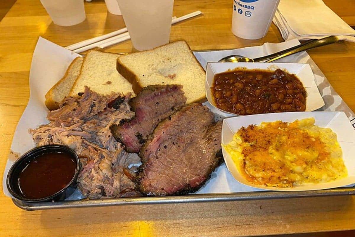 When you go to a restaurant and order Meat & Three, you’re asking for a portion of meat and three sides. Typically, you get a handful of choices for your meat, such as meatloaf, ham, or chicken. Then, you pick your sides like macaroni, okra, spiced apples, and more, all served with cornbread or biscuits and, of course, sweet tea.