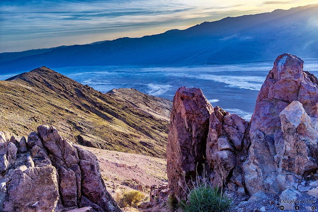 A 5,475-foot overlook with a dead-on view of Badwater Basin below and the Panamint Range beyond. The drive up is steep but paved, and the air is 20 degrees cooler than the valley floor. Sunset paints the desert in gold and violet.